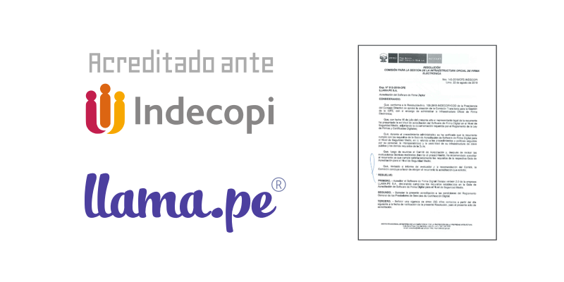 ACREDITACIONES: Acreditado ante INDECOPI y soportado por una Autoridad de Certificación acreditada en INDECOPI. Resolución 143-2019CFE/INDECOPI